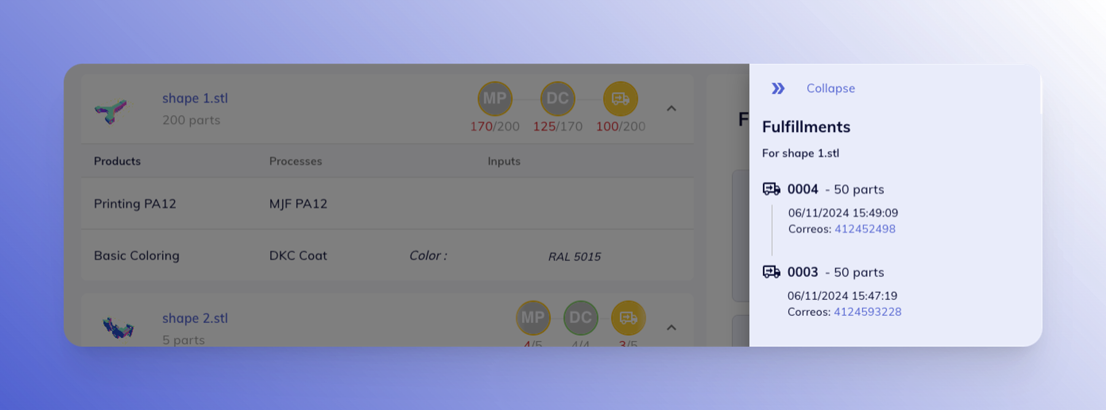 Easily track the fulfillments for a given line through its timeline to follow its deliveries.