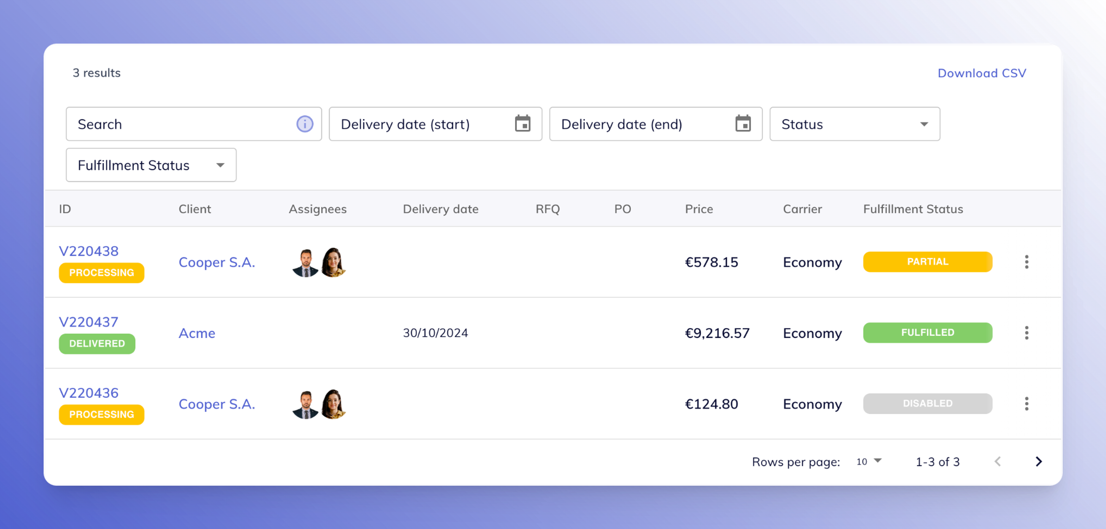 Easily keep track of fulfillments by filtering orders by their fulfillment status.