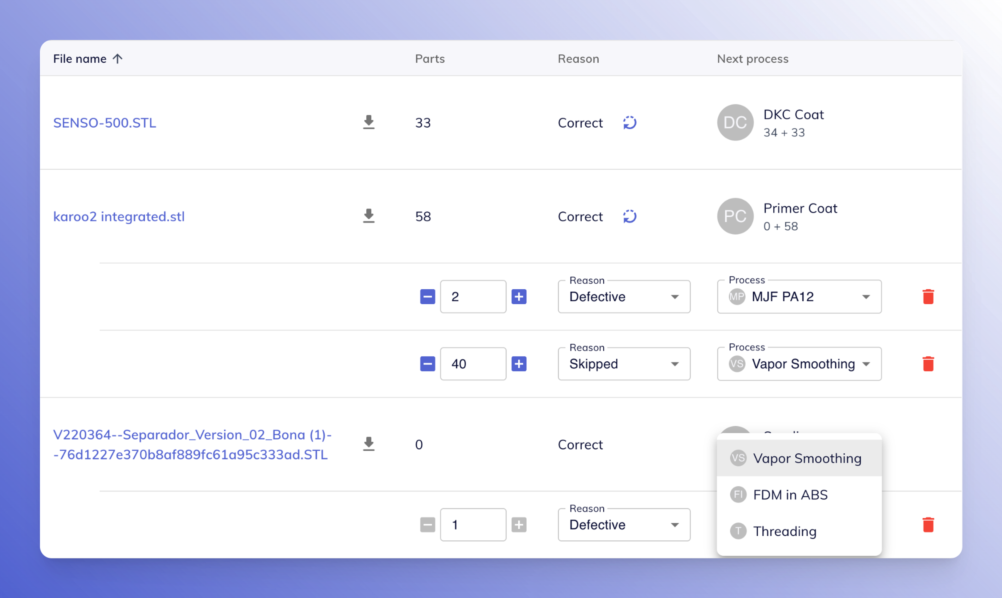 Once you complete the QA step, parts assigned to resolutions will be processable for that resolution's selected process.